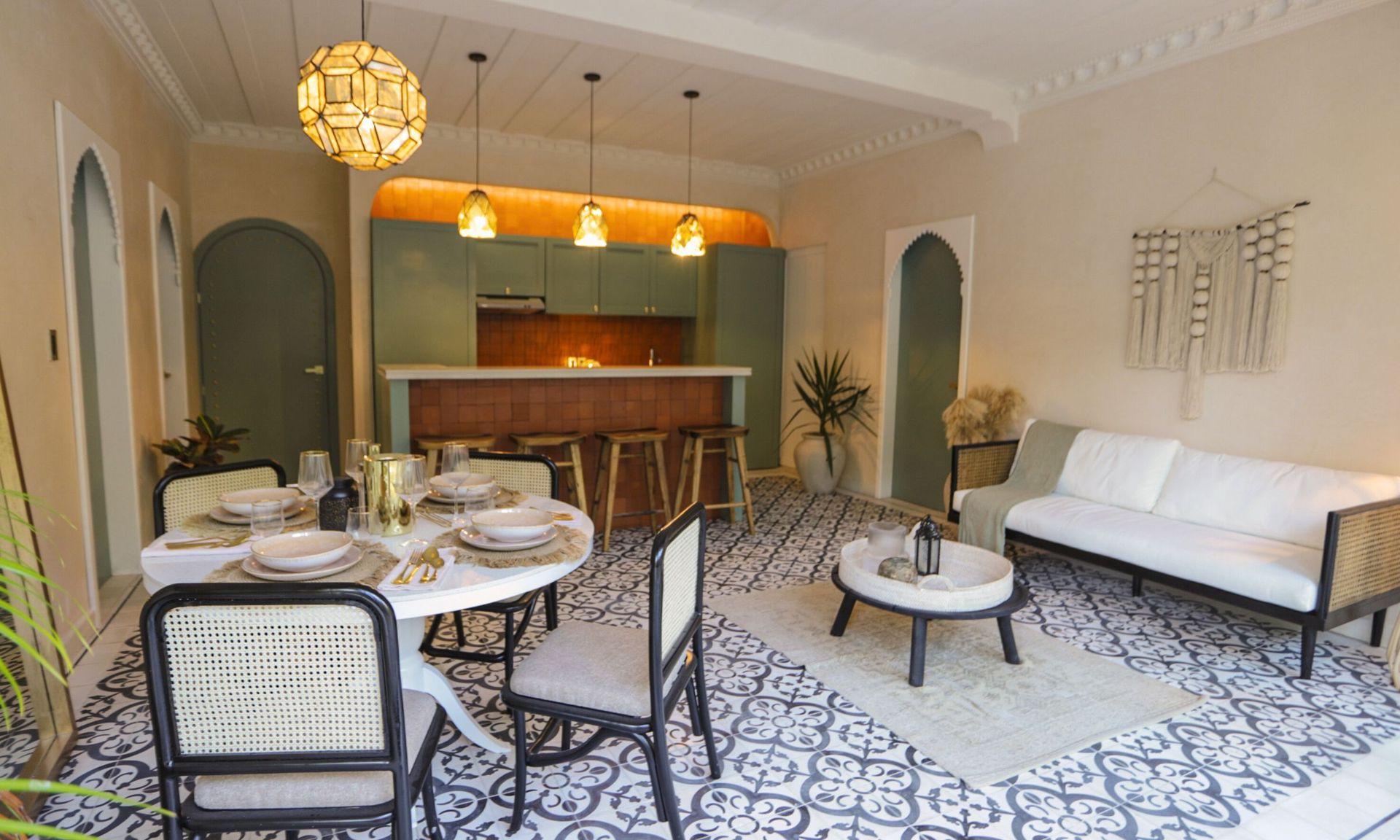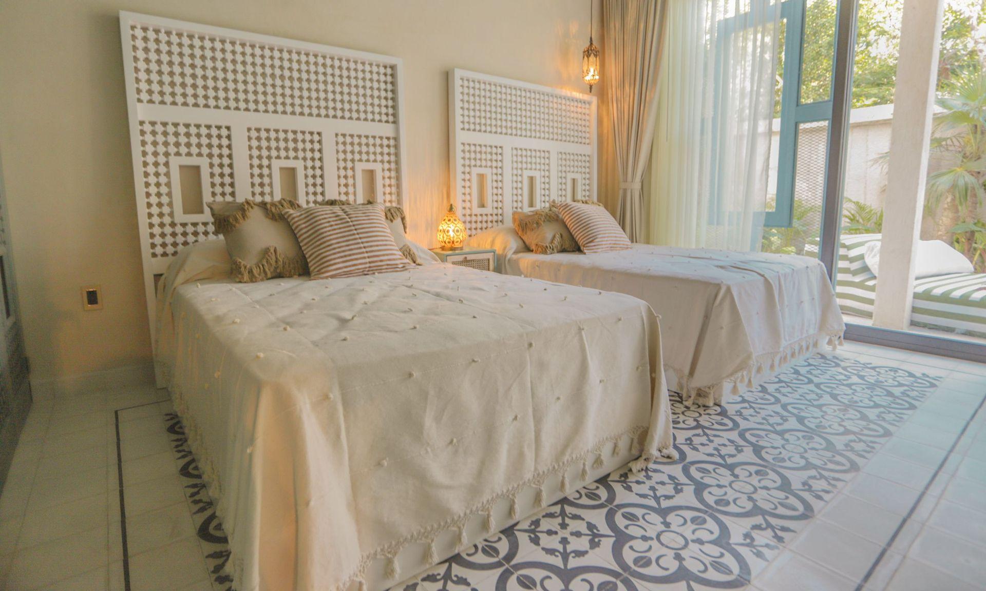 Proyecto de condominios con mobiliario a medida estilo marroquí, se diseñó este proyecto buscando resaltar los cromados, las luces, los detalles que dan la personalidad, adecuando los tonos claros y naturales propios de Tulum
