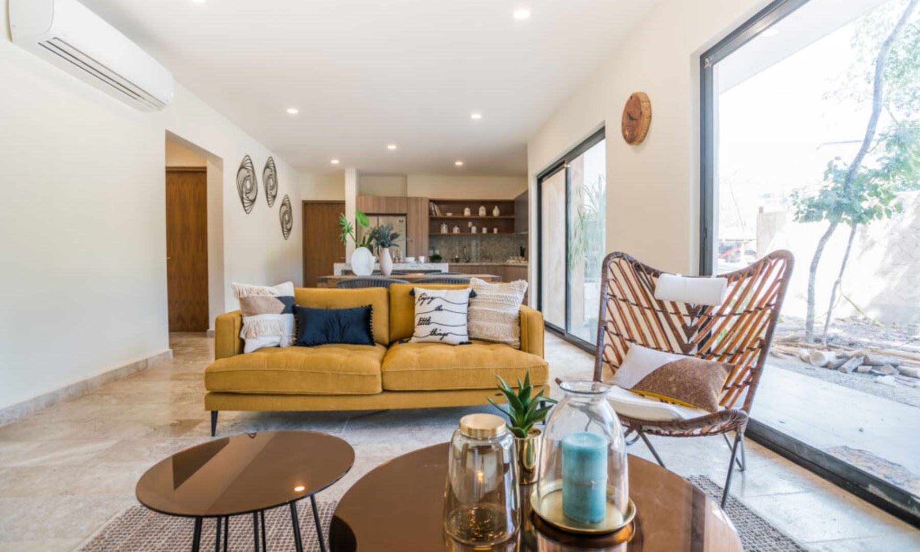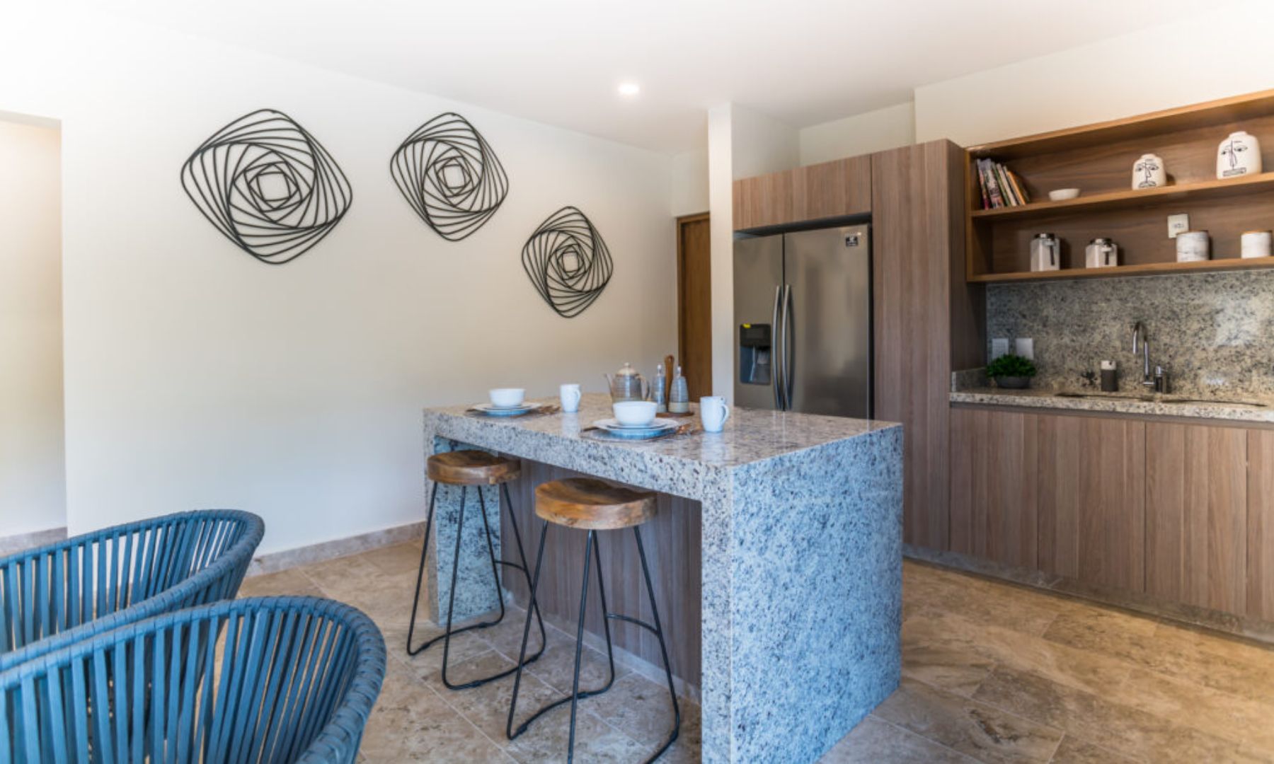 Proyecto de mobiliario y decoración en showroom principal y cuatro unidades de departamentos posteriores.